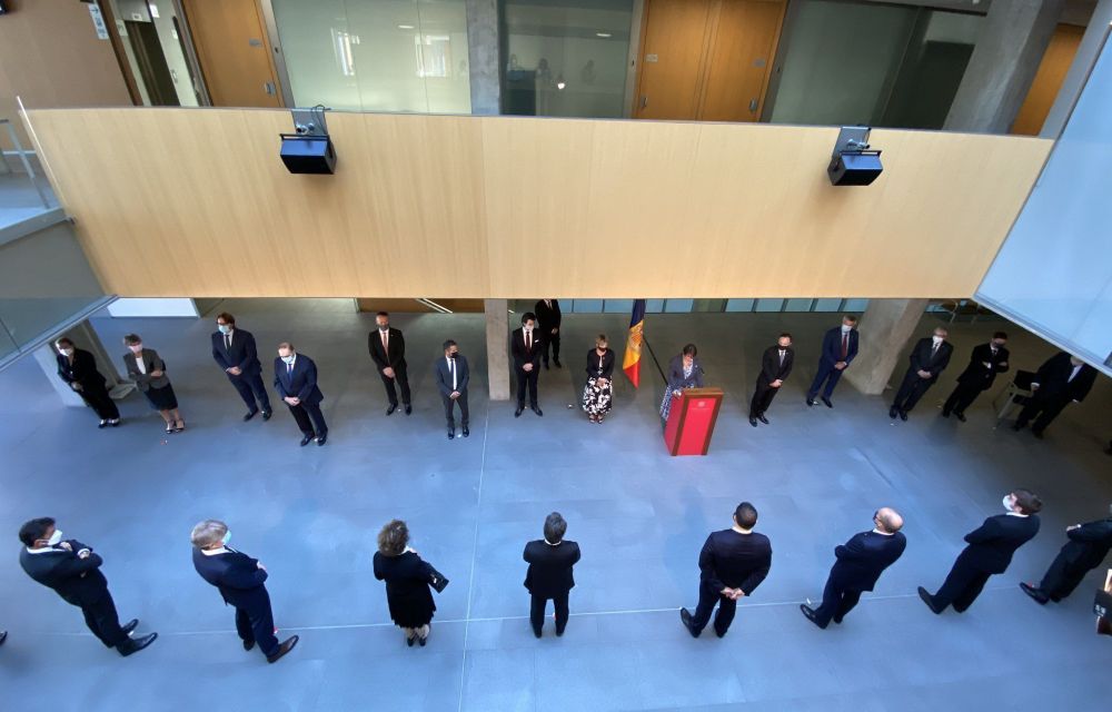 L'acte ha estat marcat per les mesures sanitàries i de seguretat. Així, s'ha canviat la sala dels passos perduts de la Casa de la Vall pel vestíbul del Consell General amb només 50 assistents, els consellers i membres del Govern.