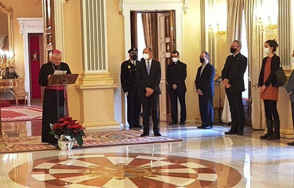 El Copríncep Episcopal ha fet una crida a l'esperança. "Que ens parla d’una set, d’una aspiració, d’un anhel de plenitud, d’una vida reeixida, d’un voler tocar allò excels, el que omple el cor i eleva l’esperit cap a les coses grans, com la veritat, la bondat i la bellesa, la justícia i l’amor. L’esperança és audaç, sap mirar enllà, amb llums llargs". Ha tingut paraules de record pel Copríncep francès, Emmanuel Macron que esta patint el coronavirus. La recepció ha acabat amb la interpretació de dues peces i de l'himne andorrà amb violí.
