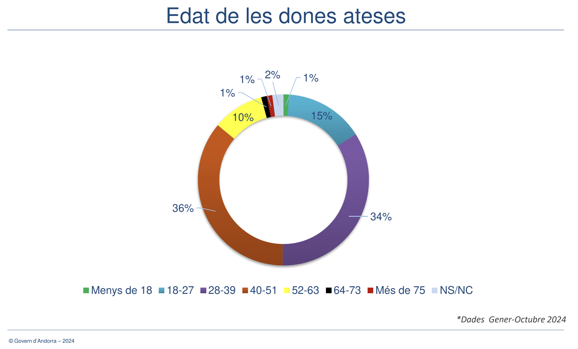 Pel que fa al perfil de les dones ateses al servei, en un 36% dels casos tenen entre 40 i 51 anys, un 34% entre 28 i 39 anys i un 15% entre 18 i 27 anys. Pel que fa als casos en menors de 18 anys suposen un 1% de les ateses.