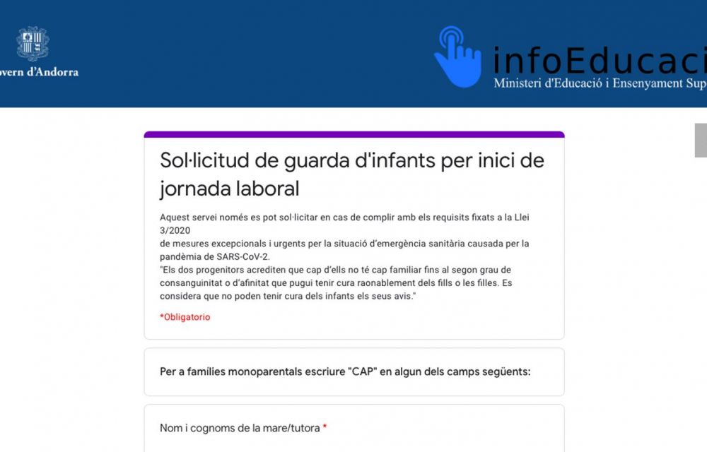 El cap de Govern, Xavier Espot, ha assegurat que l’administració estarà preparada per donar resposta a tanta necessitat com sigui necessària, alhora que com també ha recordat el ministre de Presidència i Economia, Jordi Gallardo, els progenitors que ho necessitin poden sol·licitar un permís per absentar-se de la feina, si és que han de reintegrar-se als seus llocs de treball, amb una remuneració equivalent al salari base (1.083 euros mensuals).