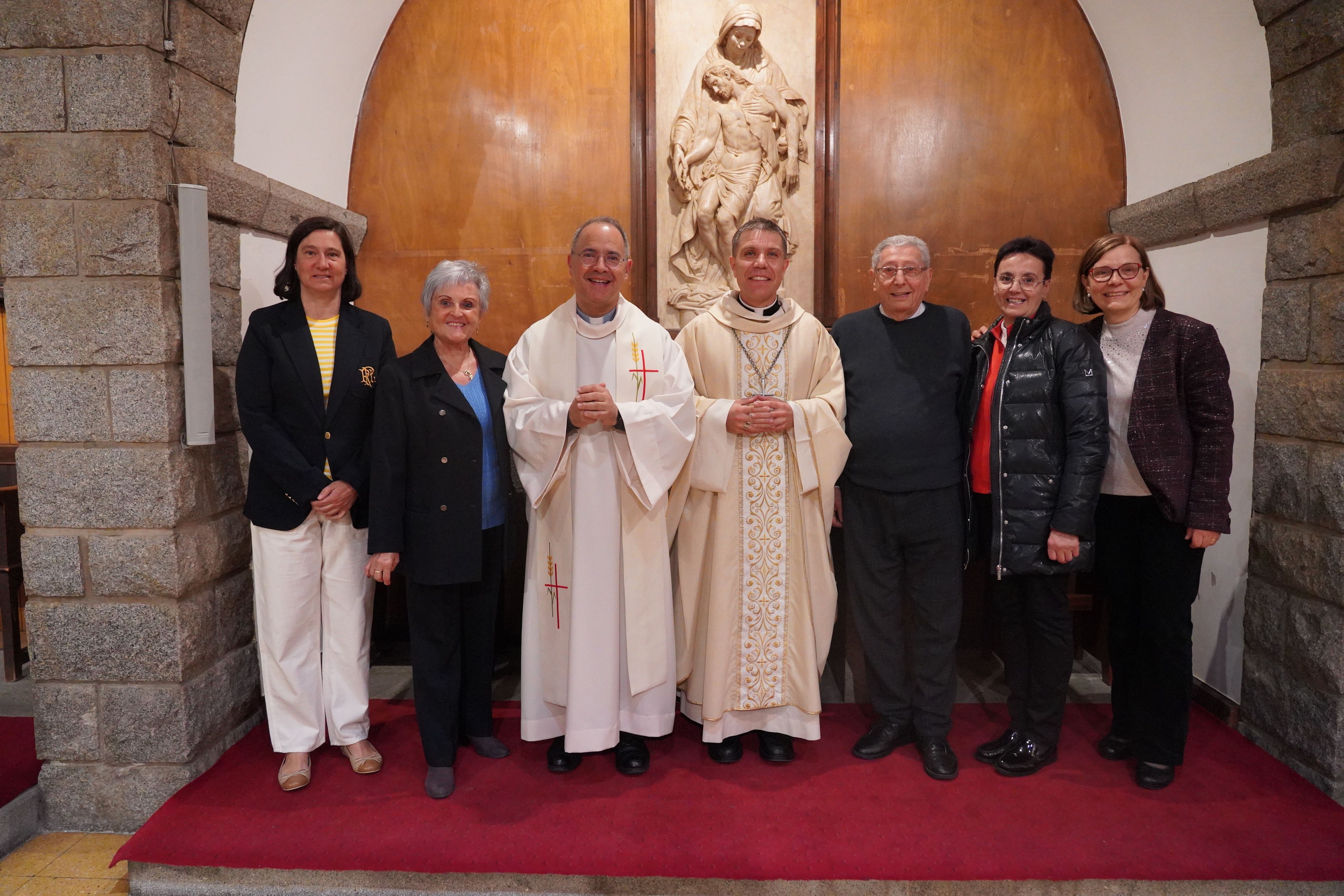 El bisbe Josep-Lluís amb els mossens Elvira i Soy i les catequistes d'Escaldes.