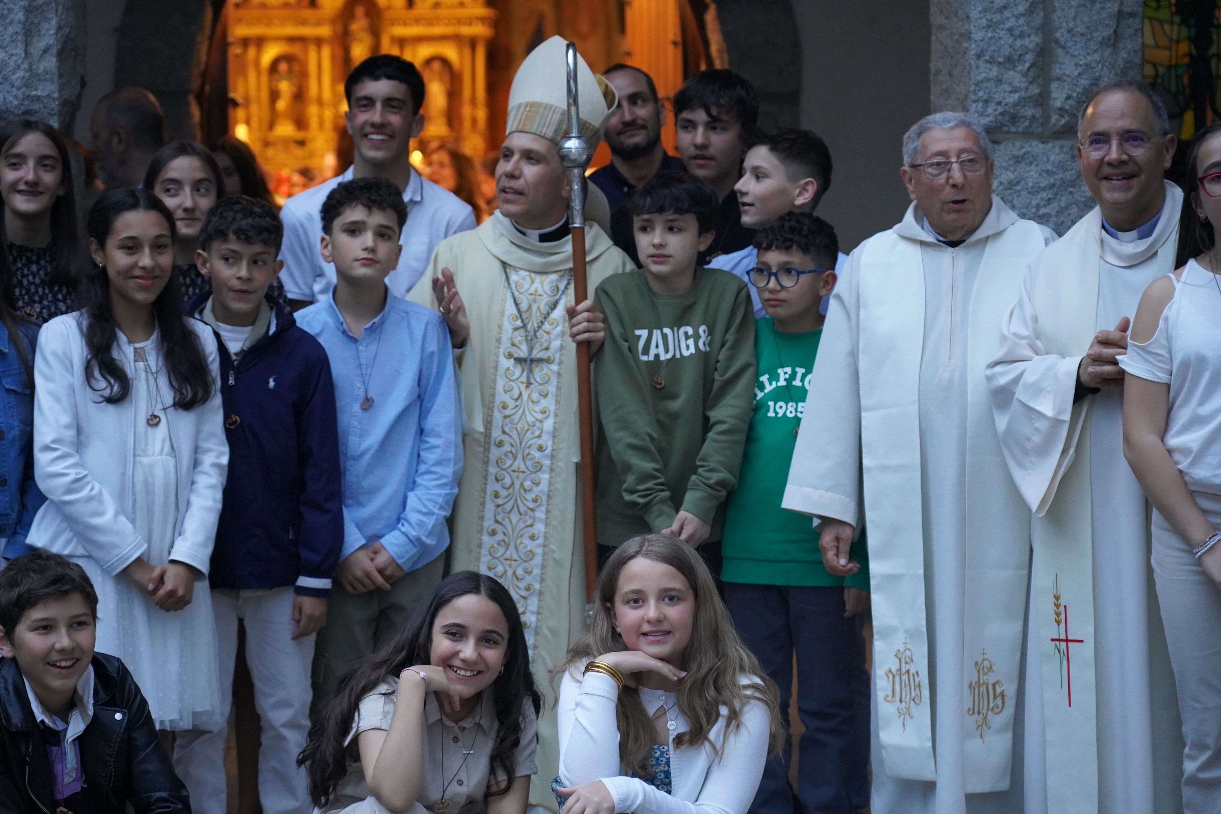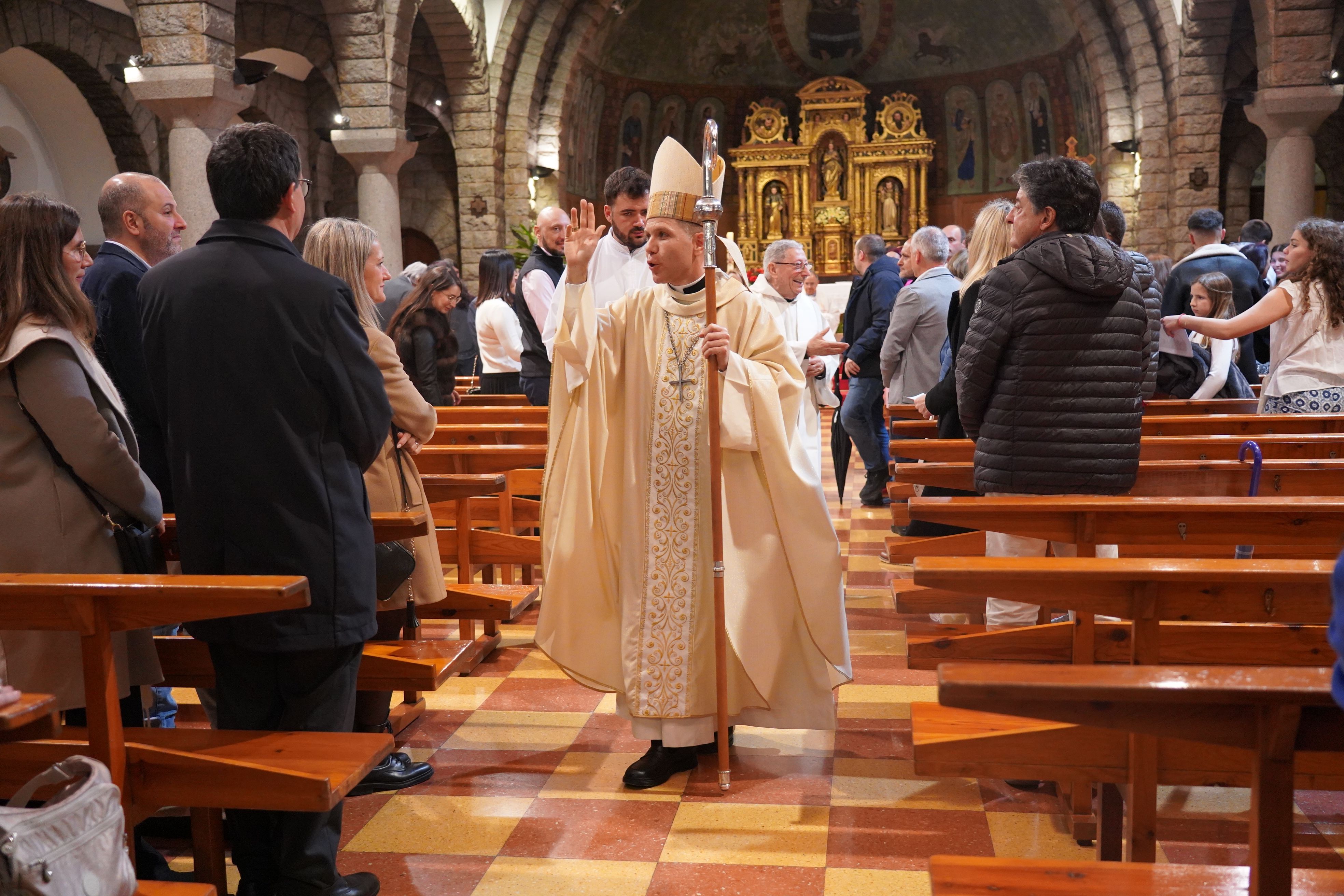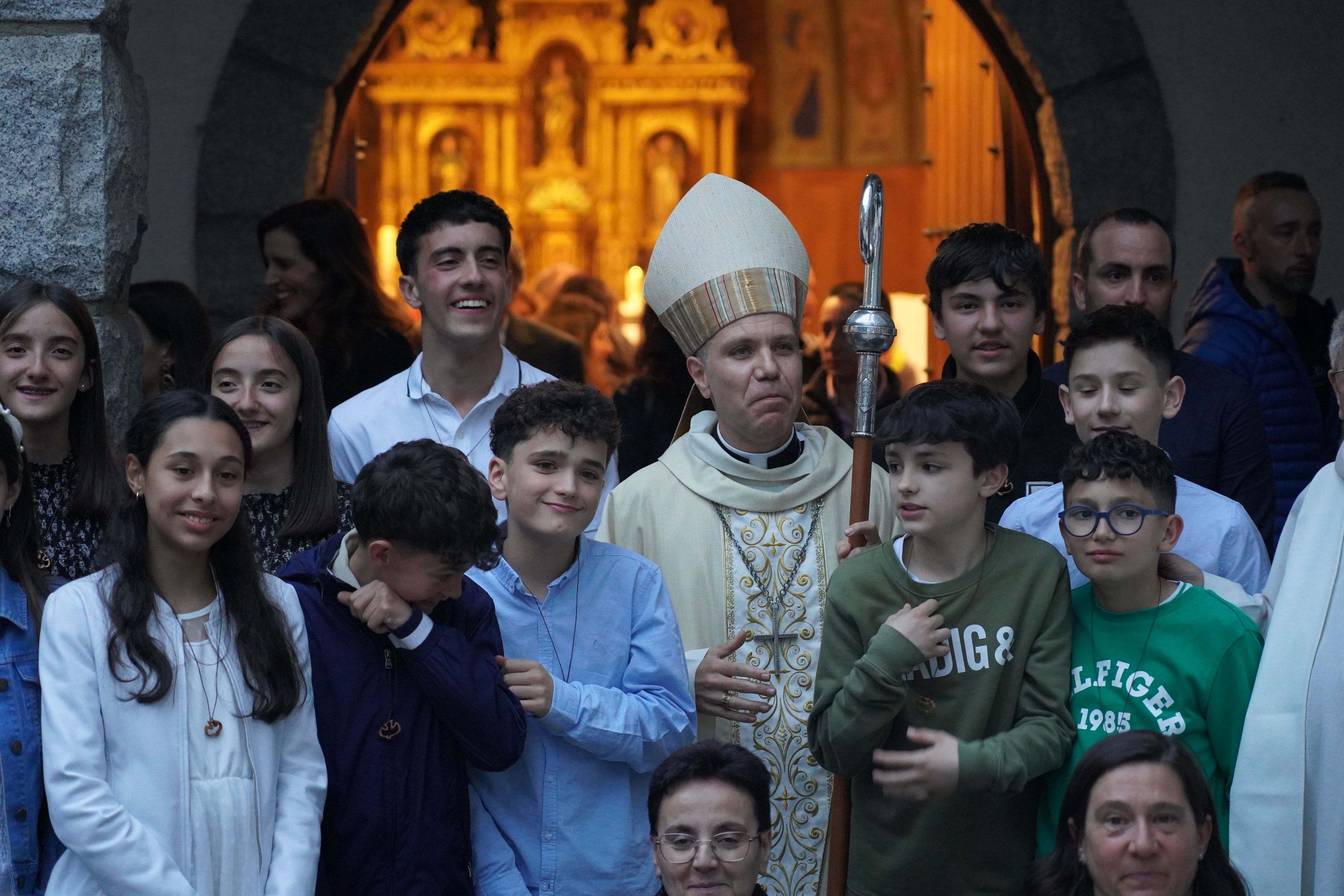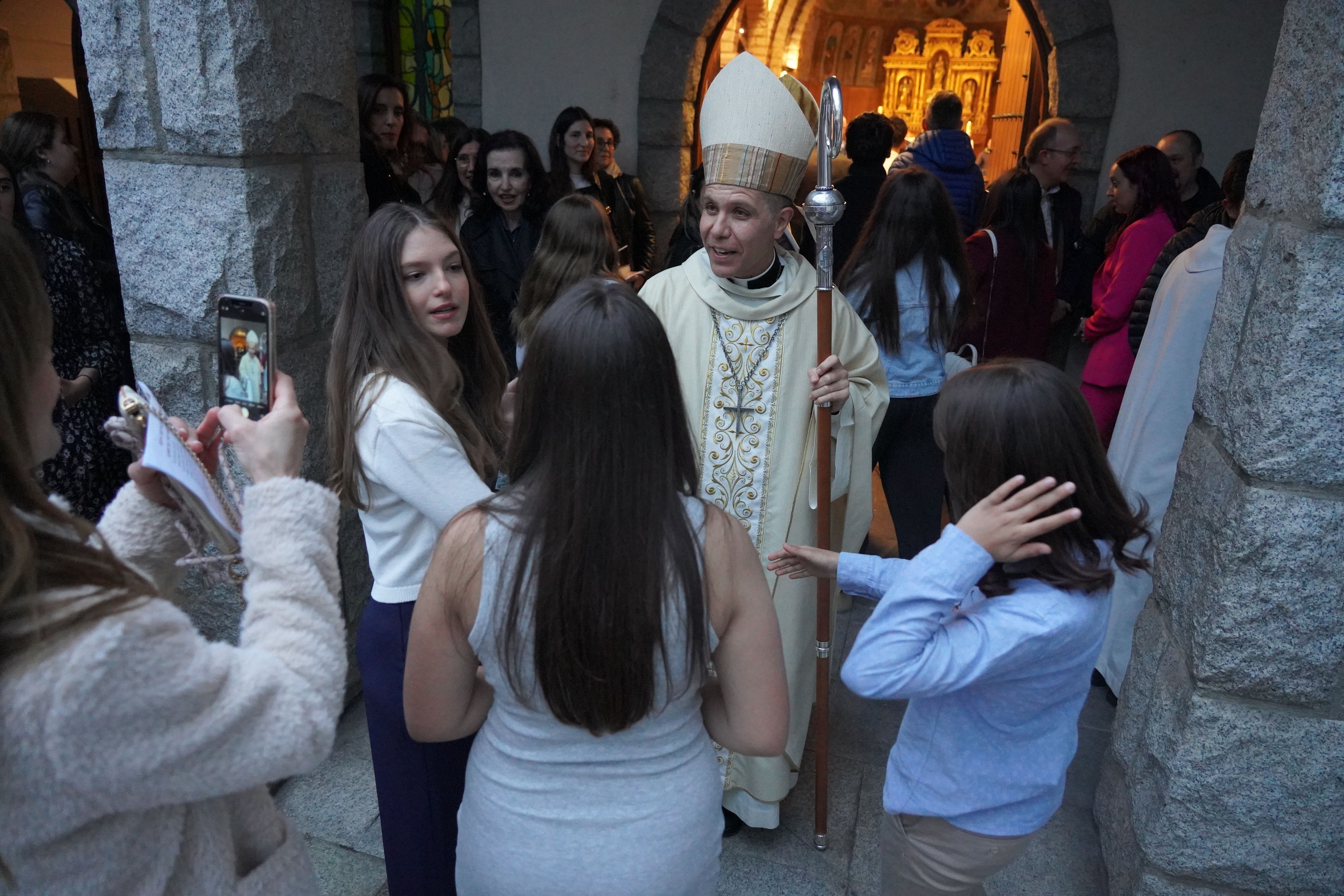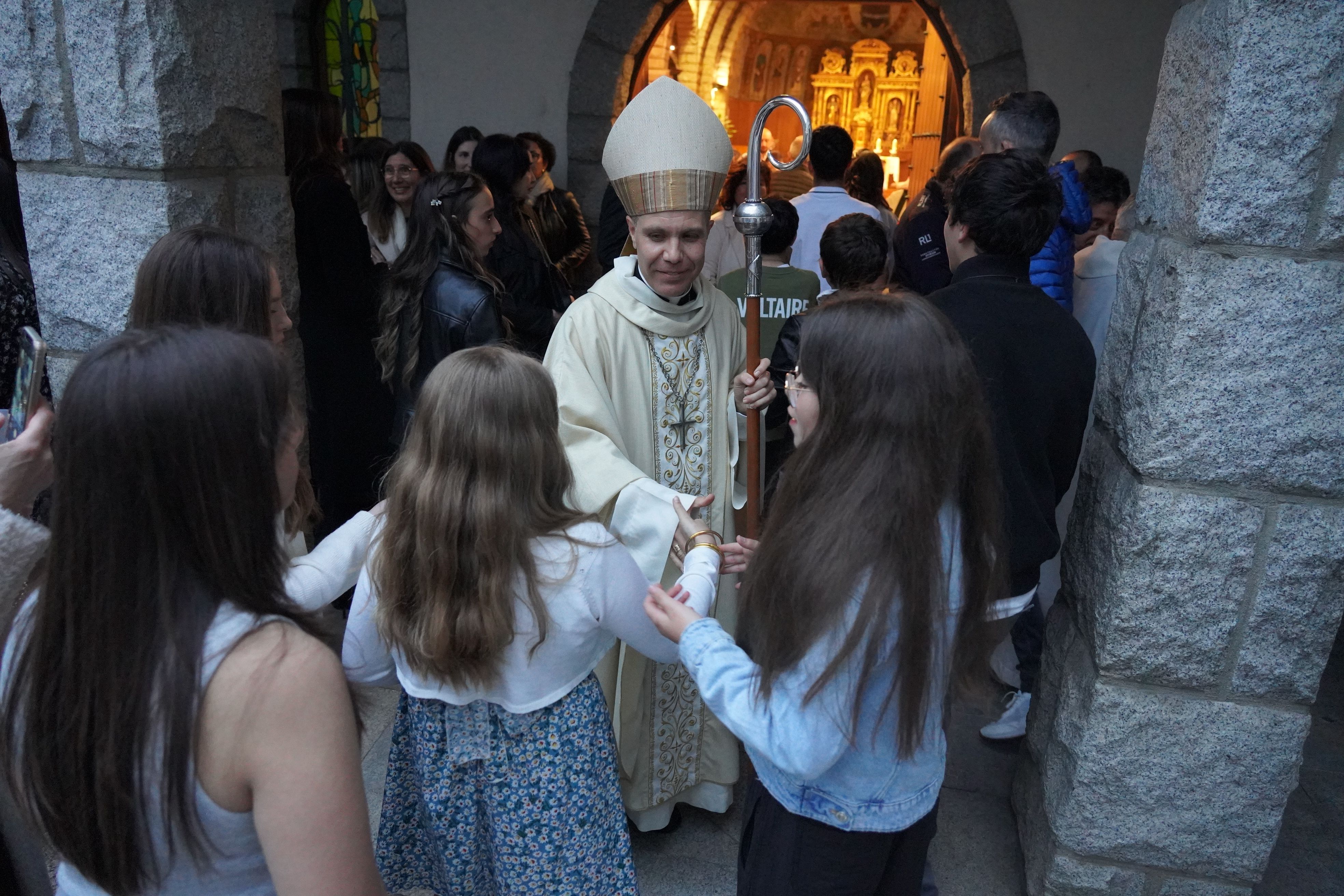 El bisbe Serrano Pentinat saludant els nens i nenes, els joves que s'han confirmat.