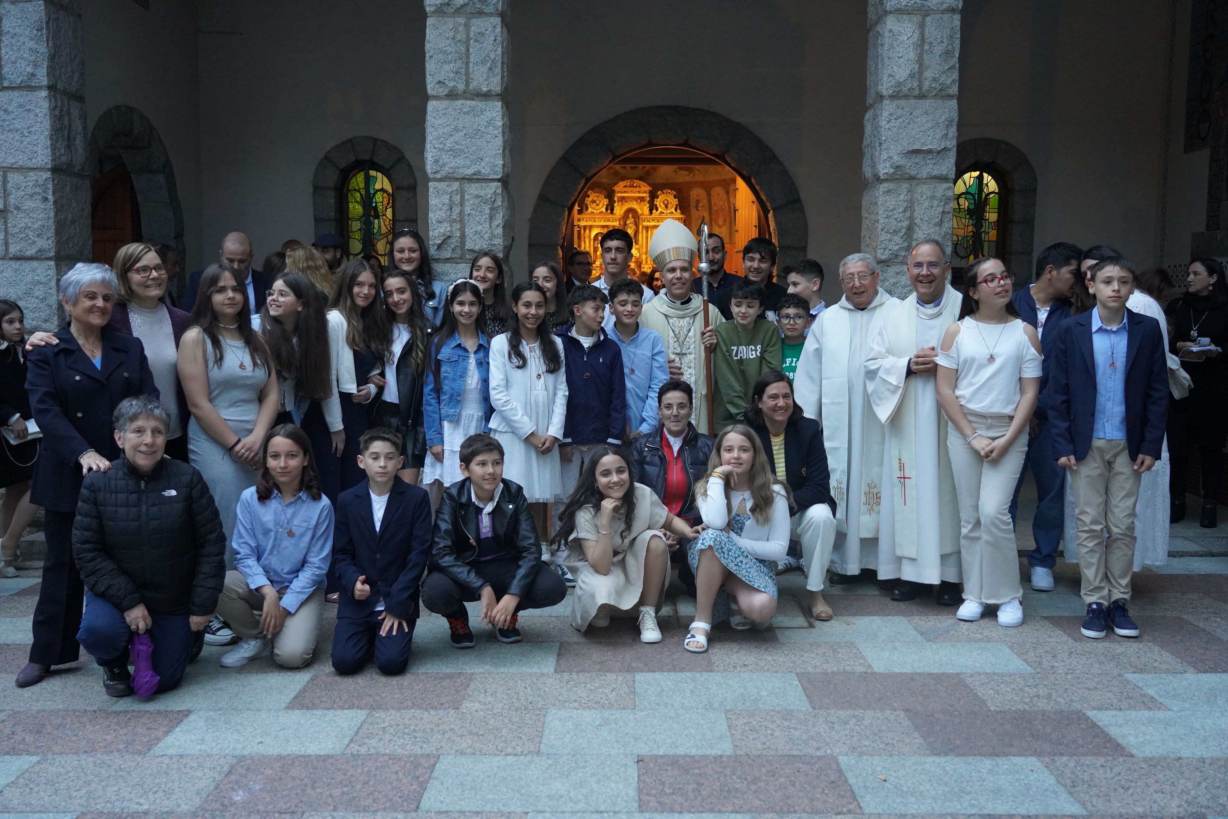 Fotografia del bisbe coadjutor amb els confirmats.