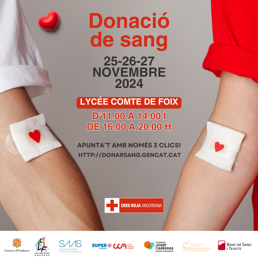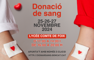 La cinquena campanya es durà a terme al Lycée Comte de Foix els dies 25, 26 i 27 de novembre d’11 a 14 hores i de 16 a 20 hores.