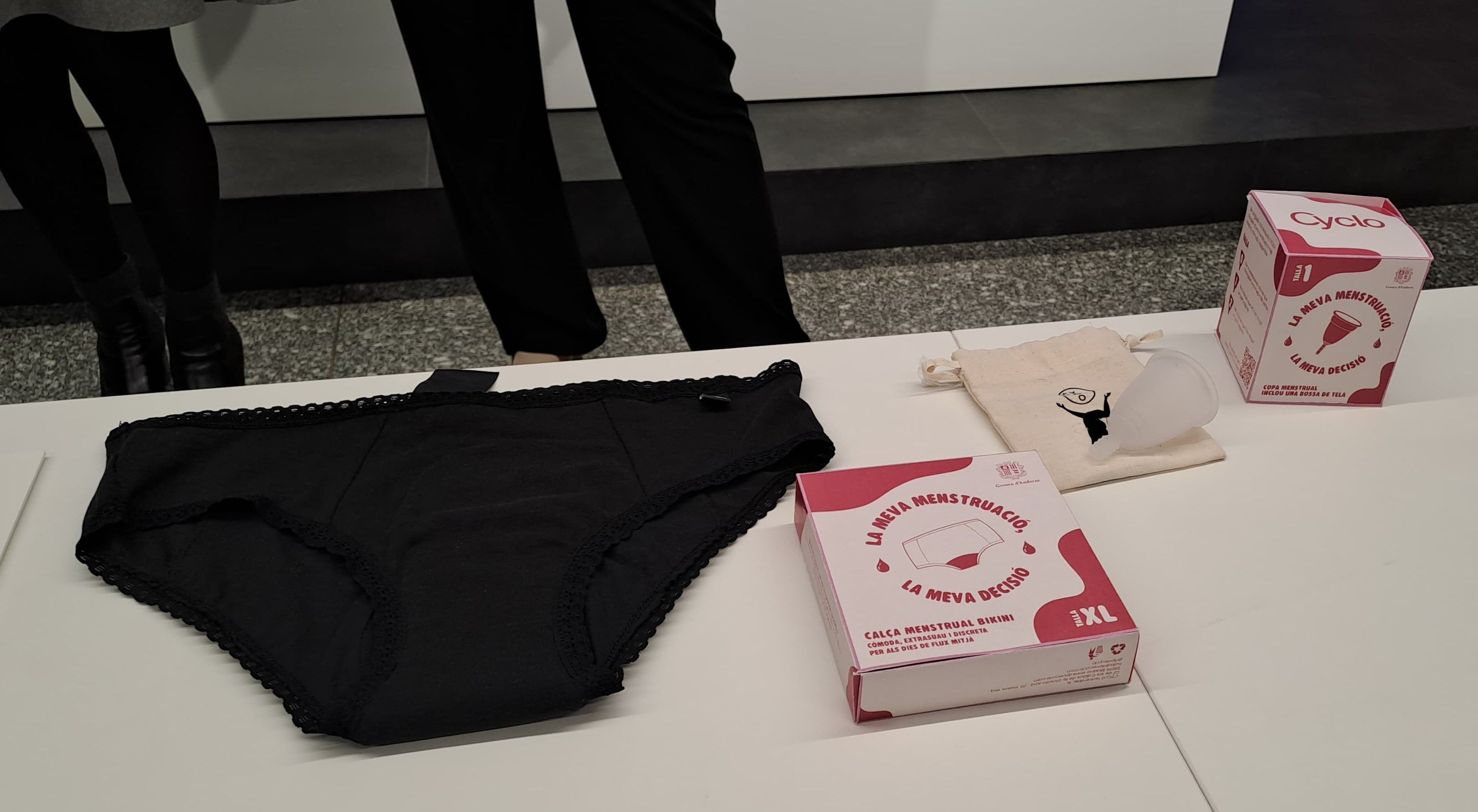 La campanya ha estat presentada aquest dilluns i hi col·laboren Govern -via els departaments de Medi Ambient, Salut i Igualtat- i el Fòrum Nacional de la Joventut. S’han destinat més de 90.000 euros a l’adquisició del material que es posarà a disposició: 8.000 productes. Per un costat, calces menstruals. Per l’altra, copes. Cada persona haurà de decidir què prefereix.