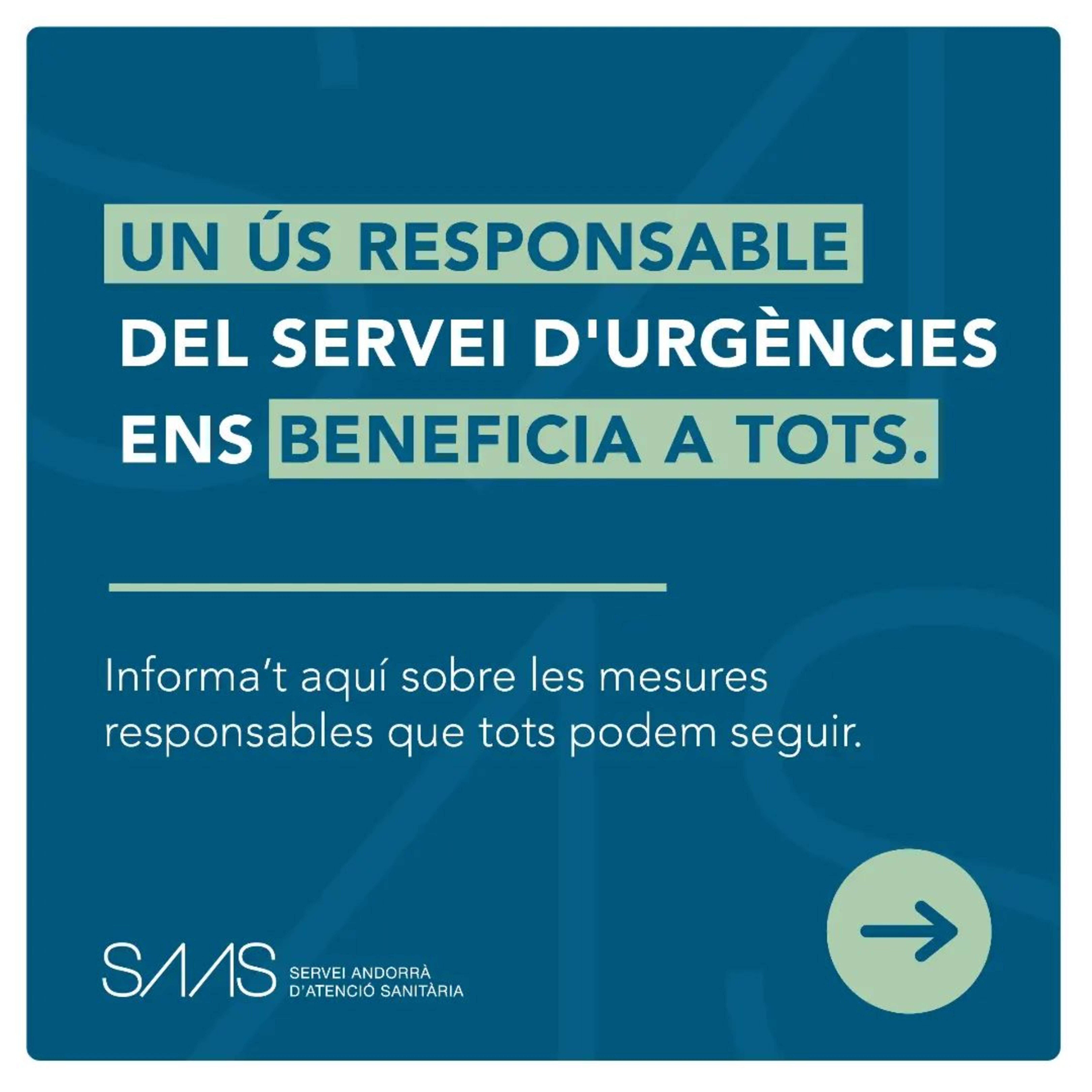 El SAAS va iniciar divendres una campanya de comunicació amb l’objectiu de fomentar un ús racional del servei d’urgències. Racional i correcte, perquè són suposadament patologies banals i que es poden tractar per via ambulatòria les que contribueixen a col·lapsar el servei i, a més, són els que fan que la sensació d’espera sigui major. De fet, per les patologies lleus, el retard és molt sensible.