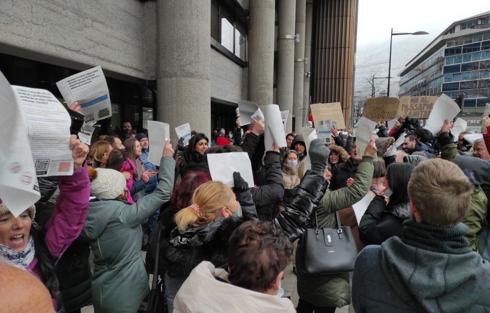 No s’esperaven ni de bon tros aplegar en alguns moments prop de 150 persones. Hi havia molts joves, molts d’ells sense mascareta o amb la protecció facial baixada. Però també hi havia ciutadans d’una naturalesa molt transversal. Des dels promotors de la famosa concentració fallida que s’havia de dur a terme fa uns mesos a la plaça del Consell General per protestar per la gestió de la crisi sanitària a dirigents de la desapareguda secció andorrana de Podem. Amb harmòniques i xiulets, però sobretot amb cartells fets amb cartró o fulls DIN-A4, molts dels concentrats han fet sentir la seva queixa.