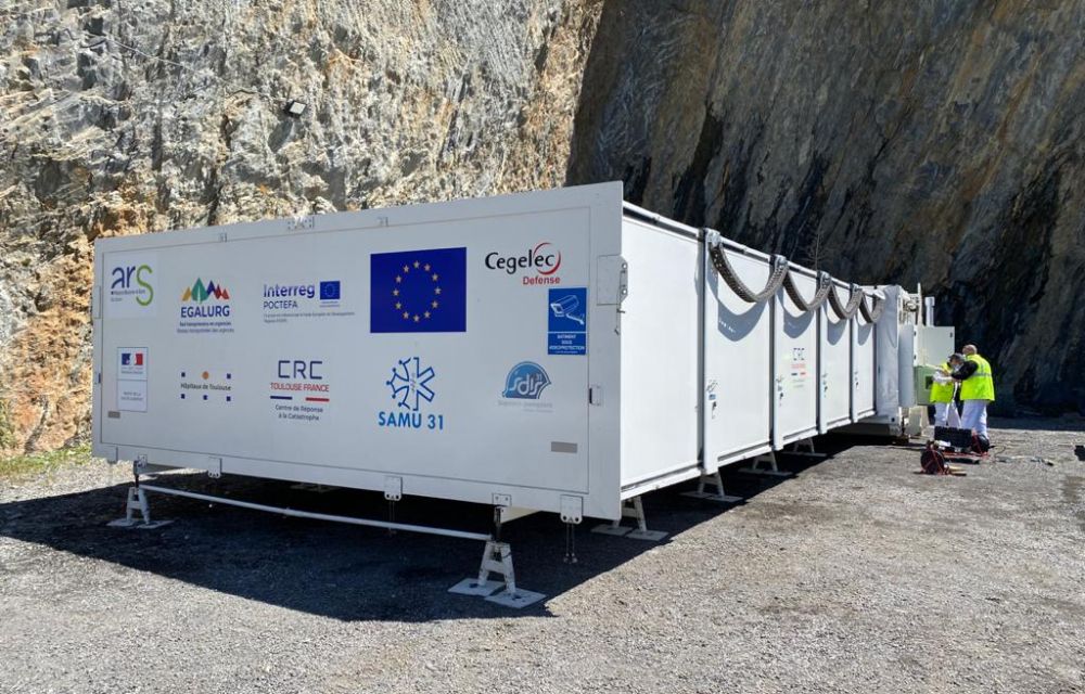 La infraestructura, que forma part del Centre Hospitalari Universitari (CHU) de Tolosa, s’integra en la xarxa de cooperació europea Egalurg. L'hospital mòbil és un dispositiu únic a Europa amb un camió creat a partir de la tecnologia militar que en menys d'una hora pot desplegar cinc sales.