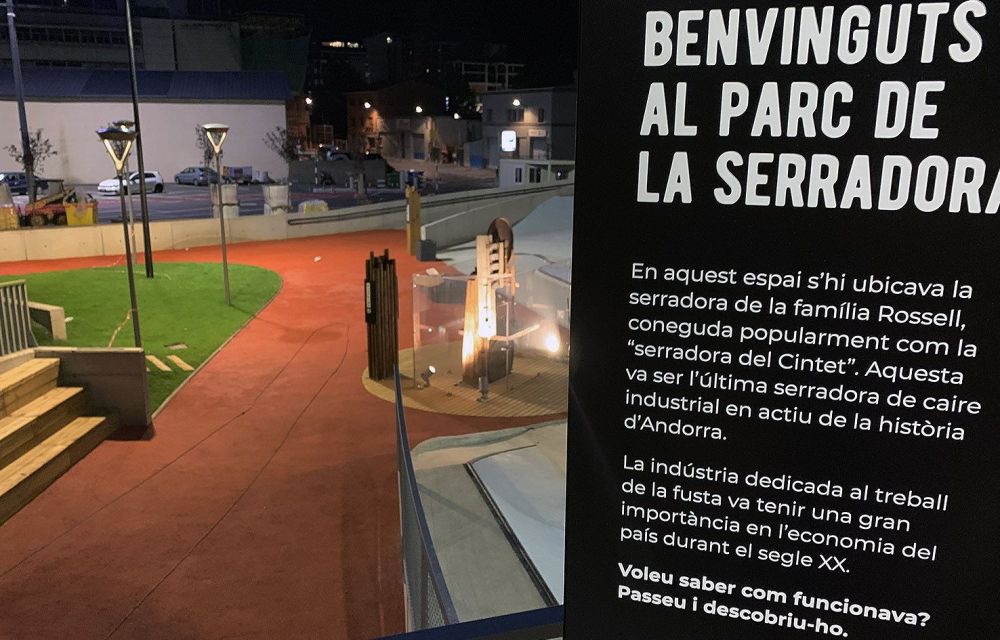On ara s’hi ha construït el parc, com bé diu el rètol que figura en un dels seus accessos, hi havia hagut la serradora de la família Rossell, més coneguda com la ‘serradora del Cintet’. Va ser la darrera serradora industrial en actiu que hi va haver al país. La indústria dedicada a la transformació de la fusta va tenir una notable incidència al Principat de mitjan segle XX.