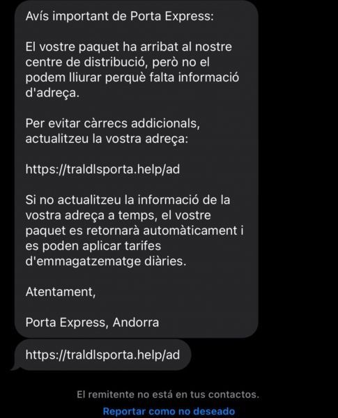 Un altre indici habitual és que els missatges provenen de correus electrònics genèrics o desconeguts, enviats mitjançant SMS, i no a través de canals corporatius verificables. Aquest tipus de frau, conegut com a ‘smishing’, aprofita la confiança dels usuaris en marques conegudes i la sensació d’urgència o oportunitat —evitar un cost o obtenir un regal— per provocar una reacció ràpida.