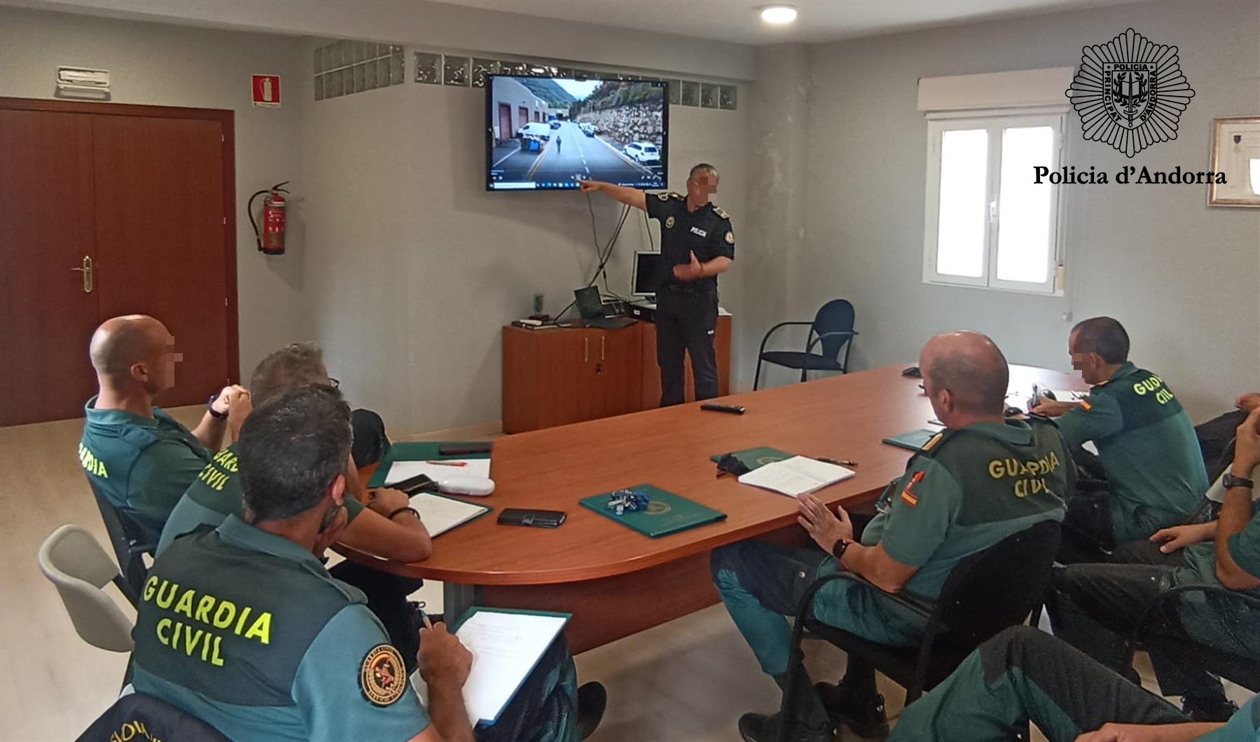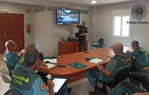 Andorra té un bagatge d’uns 20 anys en l’especialitat del rastre urbà dins de la unitat de guies canins. Amb la voluntat d’explicar les seves peculiaritats, el cap i el sotscap del grup, Ivan Palop i Bruno Queirós, han mostrat a Madrid, davant d’instructors de l’Acadèmia de la Guàrdia Civil espanyola, de la Guarda Nacional Republicana (GNR) de Portugal i de l’Agència Europea de la Guàrdia de Fronteres i Costes (Frontex), les seves característiques i les fases de l’ensinistrament.