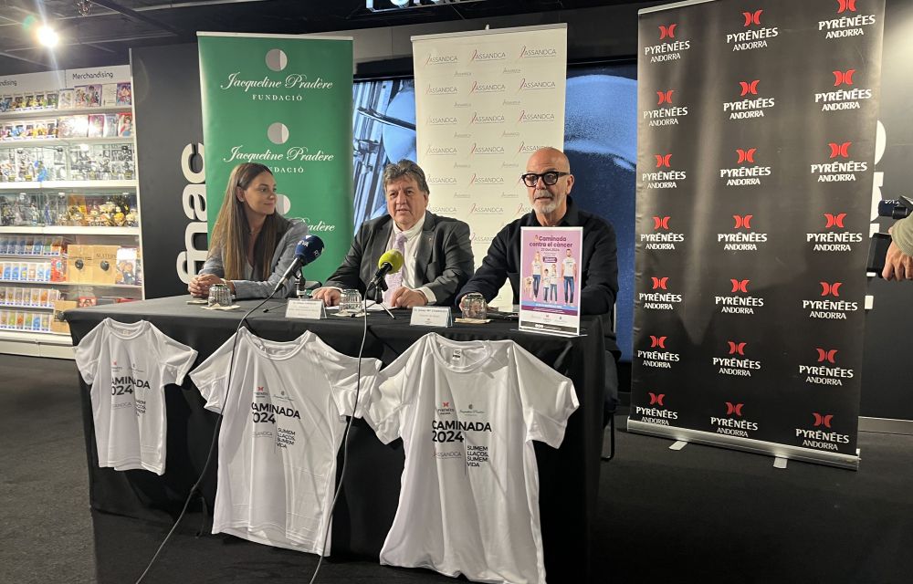 L’onzena edició de la Caminada Contra el Càncer, organitzada per Assandca i amb el suport de Pyrénées Andorra i la Fundació Jaqueline Pradere, espera aconseguir arribar als 1.800 participants que van participar en l’edició anterior, quan es van poder recaptar uns 11.800 euros amb la venda de camisetes. Serà el pròxim 27 d’octubre i sortirà a les 11 hores a la plaça del Poble pel mateix recorregut que l’any anterior, però amb la incògnita de si es passarà per l’aparcament del Falgueró o per davant de l’hospital, ja que estan pendents de si el comú de la parròquia ha col·locat una grua o no. Saravia ha ressaltat que “és l’esdeveniment més important que tenim dins de l’associació”, per poder fer una petita recaptació per donar suport als pacients d’aquesta malaltia. Per donar més visibilitat i com ja és habitual, cada any es posa a la venda unes samarretes al preu de la voluntat de donació que vulgui fer cada persona, perquè tothom pugui aportar el seu granet de sorra. Les samarretes es poden adquirir des d’avui mateix a la secció d'atenció al client de Pyrénées (4a planta).