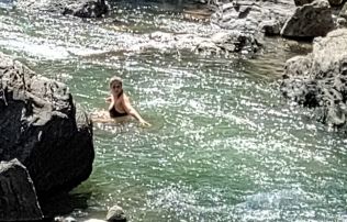 Els banyistes s'han refrescat en una zona poc fonda a poca distància del lloc conegut com l'Isla que servia d'espai lúdic al costat del pont de Molines.