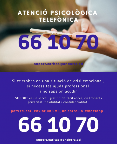 Les persones interessades en aquest servei poden posar-se en contacte trucant el telèfon gratuït 661070. Tot i això, també hi ha la possibilitat de fer-ho a través dels diferents canals de Càritas com el correu electrònic suport.andorra@andorra.ad o per whatsapp al mateix número de telèfon. Una vegada es posin en contacte el primer que es farà és una valoració de quina és l’orientació específica per a cada persona. En alguns casos, només caldrà suport puntual. En d’altres, en canvi, es tractarà de fer un seguiment psicològic. També es podrà derivar la persona a un servei especialitzat, sempre i quan hi estigui d’acord.