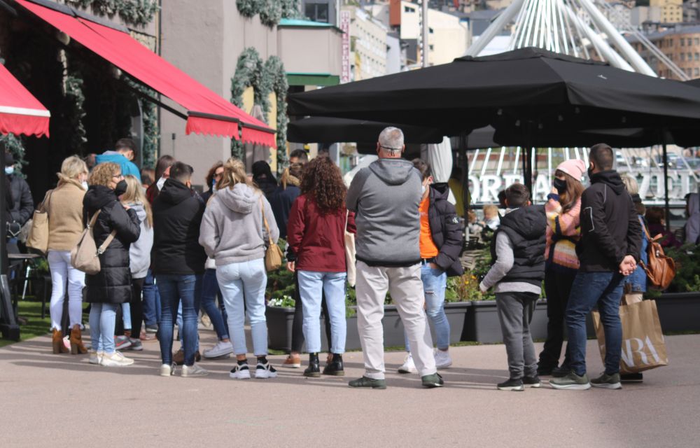 La imatge oferta per les limitacions en bars i restaurants -turistes consumint o fumant en ple carrer, asseguts a terra, amuntegats i amb la mascareta abaixada en molts casos- ha contrariat el sector de l’hostaleria mateix, que no entén que sigui millor, ni sanitàriament ni a nivell reputacional, haver d’aplicar unes mesures que, a més, acaben sent discrecionals, arbitràries, fins i tot. La restricció horària ha comportat que s’hagin format llargues cues a les portes d’alguns restaurants, especialment els situats en l’artèria formada per Meritxell i Carlemany, que ha tornat a ser una riuada de gent.