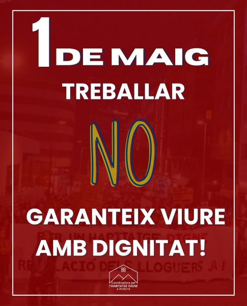 Des de la Coordinadora per l’Habitatge Digne, denuncien un model que empobreix les persones treballadores i defensen una Andorra on viure amb dignitat no sigui un luxe. “Aquest 1 de maig, no callis. Reivindica, comparteix i organitza’t, perquè tot comença quan diem prou! Per una Andorra on treballar no sigui sinònim de precarietat!”, conclouen.