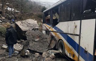 El bloc, d'unes deu tones, es va partir en el moment de l'impacte, generant desperfectes a tot el lateral del vehicle i encastant-se al maleter. Aquest bus de 55 places era un dels que més treballava de l'empresa, que utilitzava aquell terreny des de feia uns quinze anys i sense cap problema.