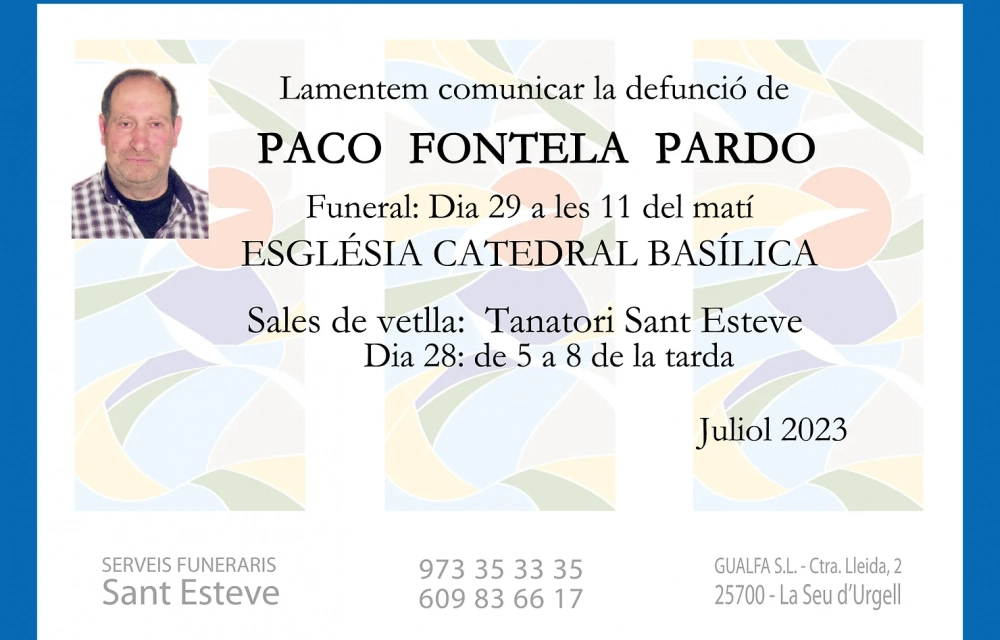 Paco Fontela serà acomiadat aquest dissabte en una missa funeral a la catedral de la capital urgellenca