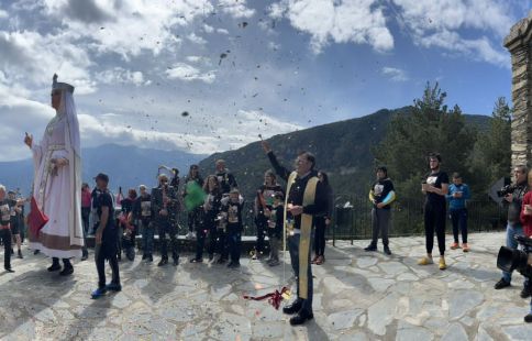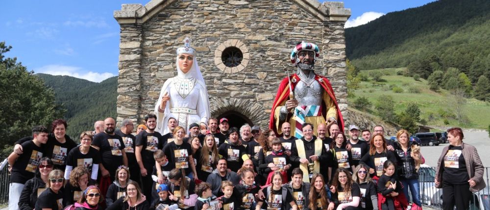 El trajecte entre la casa consistorial i la Borda de l’Arena l’han completat en menys d’una hora tot fent relleus entre els portadors dels dos colossos. Allà han fet una parada i han pres un refrigeri per continuar amb la ruta fins el Santuari. A poc menys de 500 metres de coronar la fita se’ls ha unit una xaranga i així, entre música, petards i xerinola han arribat als peus del temple. La consellera de Cultura, Sonia Carrillo ha fet tot el recorregut amb la comitiva i al cim se’ls ha unit la cònsol menor, Mireia Codina.