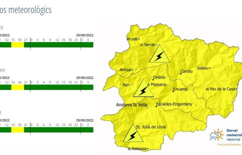 Aquest divendres, el patac d’aigua que va caure al centre del Principat poc abans de les 7 de la tarda va comportar alguns problemes d’estancament d’aigua en punts de la xarxa viària d’Escaldes-Engordany. Demà diumenge es pot repetir el mateix patró de temps, però amb ruixats més febles.