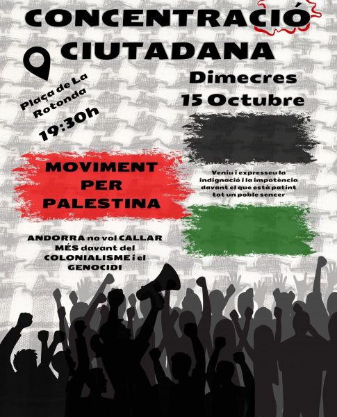 La convocatòria, organitzada sota el nom de "Moviment per Palestina", s’anuncia com una trobada per donar visibilitat a les reivindicacions d’una part de la societat andorrana en relació amb el conflicte a l’Orient Mitjà. Els impulsors reclamen que el procés de pau tingui en compte la veu de la població palestina.