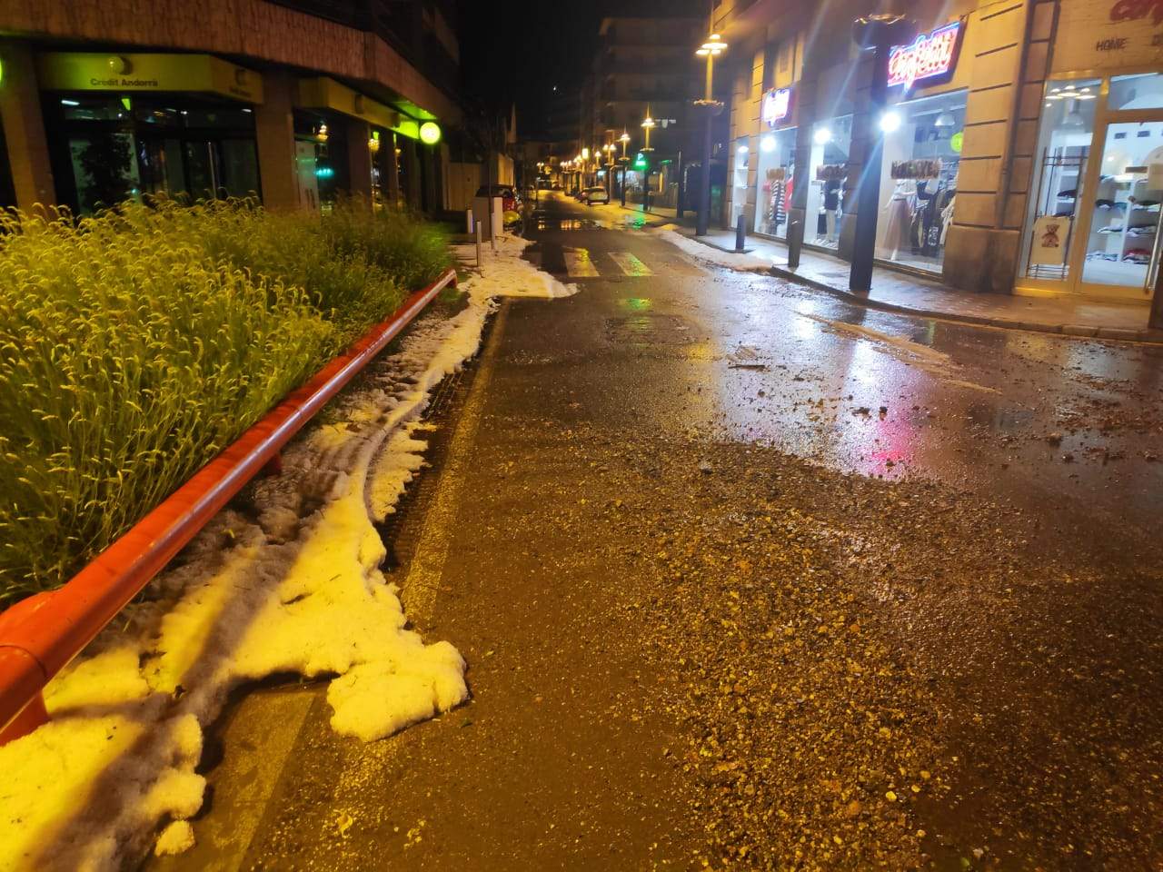 Calamarsa acumulada al voral de l'avinguda Verge de Canòlich a tocar la plaça Laurèdia.