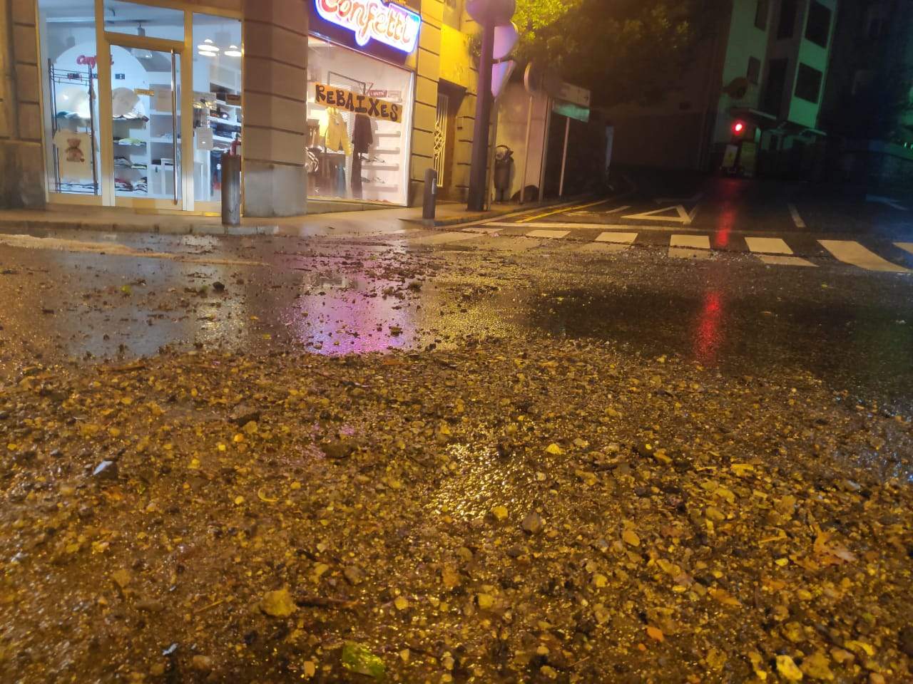 Calamarsa acumulada al voral de l'avinguda Verge de Canòlich xamfrà amb la plaça Laurèdia.