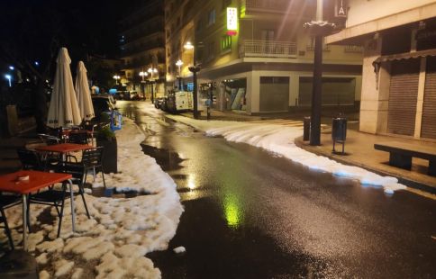 Calamarsa acumulada al voral de l'avinguda Verge de Canòlich.