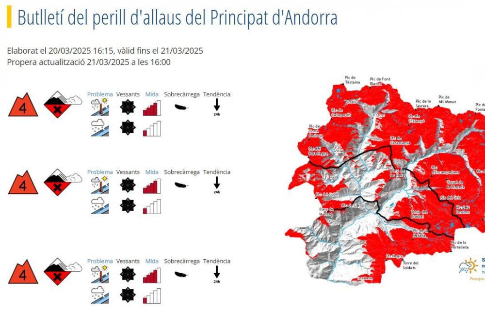 Amb la prealerta, el departament de Protecció Civil recomana que es limitin les activitats i sortides a la muntanya i que es prioritzin els recorreguts habilitats per les estacions d’esquí. En cas de realitzar alguna activitat fora pista, cal planificar la ruta segons les condicions de la neu i l’exposició del recorregut, anar equipats amb el material de seguretat (DVA, pala, sonda) i extremar les precaucions. De forma preventiva, i després de les fortes nevades, aquest passat cap de setmana des de l’àrea de Conservació i Explotació de Carreteres (COEX) ja es van activar els plans d’actuació per fer tirs preventius d’allaus a les zones més exposades del territori (Arinsal-Les Fonts, Soldeu-Guardiola, Arcalís i Ransol). El servei es manté alerta davant l’evolució meteorològica per si cal fer algun altre tipus d’actuació.