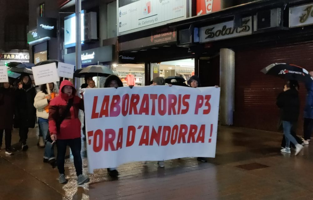 La marxa, que s'ha fet sota una pluja intensa ha comptat amb la participació de candidats a les pròximes eleccions del 2 d'abril com Jean Michel Armengol, Pere Mas, Carine Montaner, Mari Soto, Elisa Muxella i el conseller al comú ordinenc, Enric Dolsa. Els manifestants portaven cartells i la marxa silenciosa estava encapçalada per una pancarta amb el lema 'Laboratoris P3 fora d'Andorra".