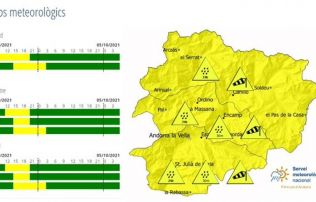 En altitud serà fort amb ràfegues de fins a 80 km/h. Les temperatures màximes seran de 18ºC a Andorra la Vella, 14ºC a 1500 metres i 7ºC al Pas de la Casa. La isoterma de 0ºC se situarà a 3500 metres al migdia i 3200 metres a la nit.