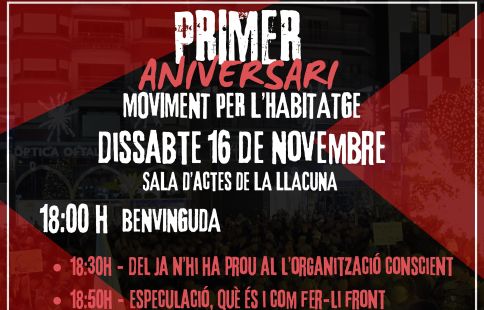 Tot i que, segons afirmen, “per part de les institucions, s’estan prenent mesures insuficients i els abusos de grans tenidors i especuladors no s’aturen”, subratllen la importància de fer una mirada enrere “per veure tot el que hem avançat, conèixer on estem i fer una mirada cap al futur.” Per finalitzar l’acte, a les 20:00 oferiran “un petit refrigeri i pica-pica per a les assistents.”