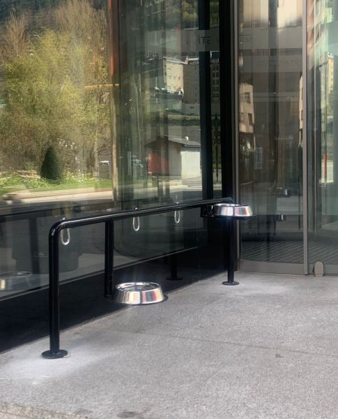 Com en el cas de Govern, just a l’entrada hi ha un espai per poder-hi lligar les mascotes alhora que tenen uns recipients per poder beure