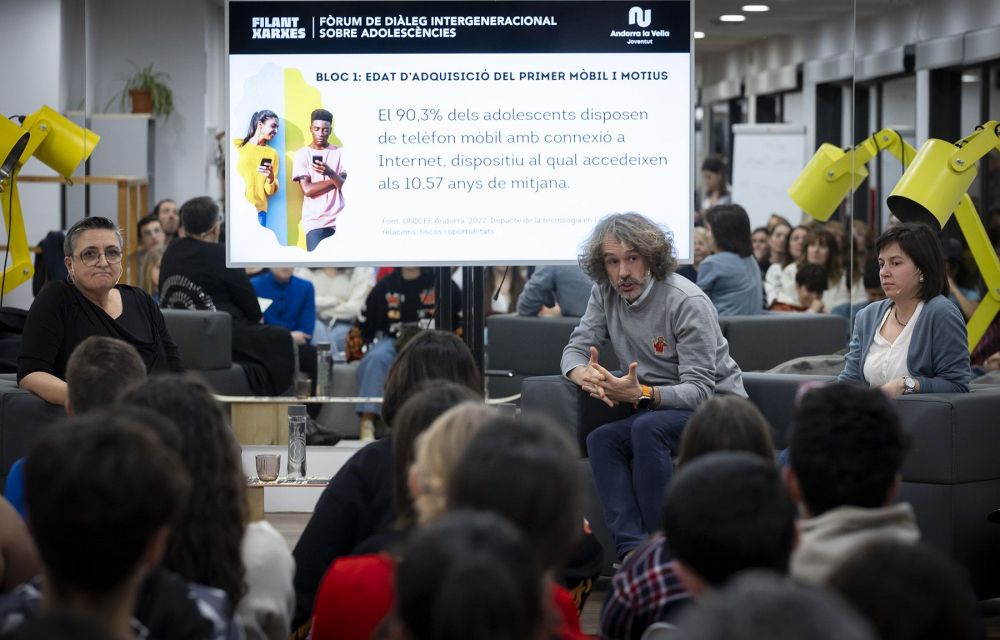 Evidentment, sobre aquest darrer aspecte, per exemple, no hi ha consens, encara que no només mares, també algun dels joves que han assistit a la xerrada s’han posat força al costat de l’especialista en salut mental. On sí que hi ha hagut també un consens general, també entre els adolescents, és que els progenitors, per bé i per mal, són un referent, un model. I ha quedat clar que la majoria de pares i mares, fins i tot les més joves que hi havia a la sala, no han pogut tenir el domini de la tecnologia com el tenen ara els adolescents i, a voltes, això pot generar dificultats en la gestió.