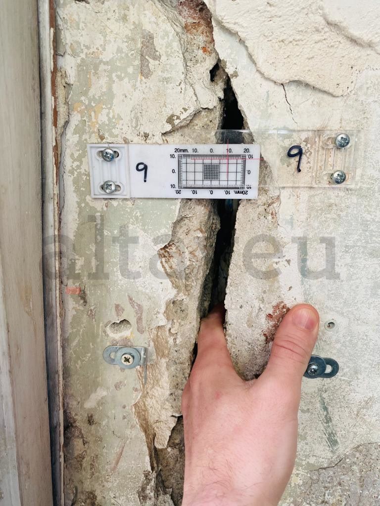 Es refereixen a la decisió de desallotjar l’immoble. Ja ho va explicar l’Altaveu aquest dijous mateix després de conversar amb altres inquilins de l’edifici. “Cada dia que passa les esquerdes van a més” com evidencien els testimonis que es van col·locar el mes de maig passat. Se n’han posat més posteriorment. “Tot això ja s’havia d’haver fet quan van començar a aparèixer les primeres fractures. Esperem que ara no sigui ja tard”, clamen els veïns, que recorden que “l’escala de l’edifici també està afectada. No són només els dos pilars de davant, els que estan danyats”.