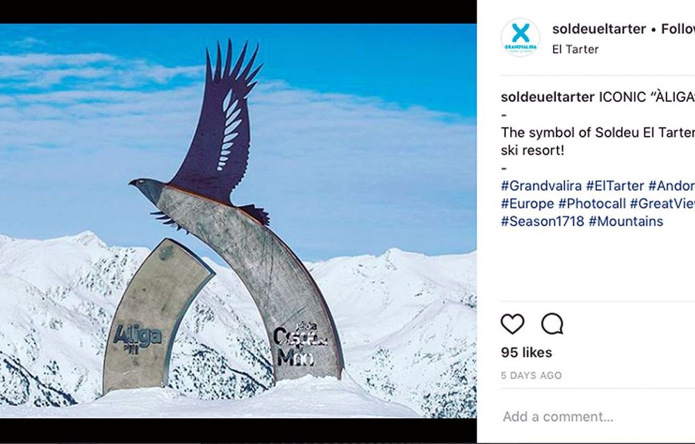 La branca canillenca (Ensisa) de Grandvalira ja tenia presència a les xarxes socials, però sense un sostre comú ni una gestió gaire acurada. Des de fa pocs dies @soldeueltarter comença a fer feia d’unificació de tota l’oferta d’Ensisa a Instagram i Facebook, les dues xarxes on més interactua el perfil de client de l’estació canillenca.
