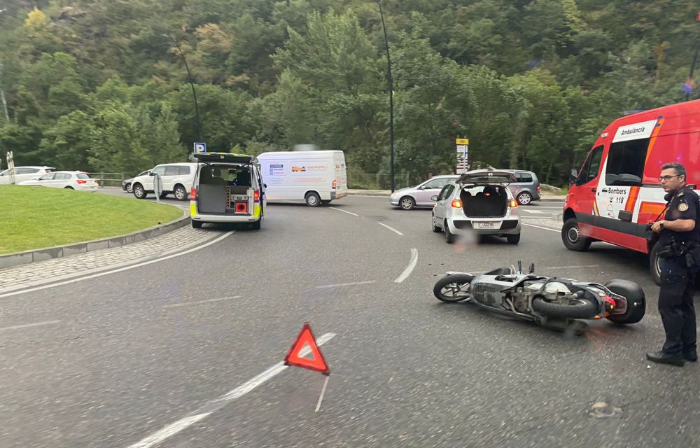 Un accident amb una moto implicada a la rotonda de la Margineda està dificultant més encara del que ho sol ser normal les tardes d’aquest agost la circulació al sud del país. Hores d’ara hi ha trànsit dens per sortir del Principat per la frontera del riu Runer. La motocicleta accidentada circulava en direcció a Andorra la Vella. Sanitaris dels bombers s’han fet càrrec de la situació juntament amb experts d’atestats de la policia.