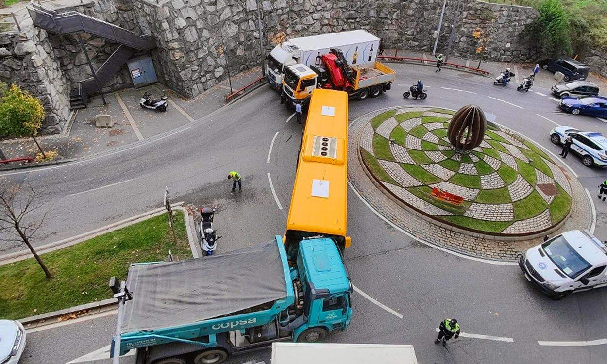 Un dels camions ja s'ha tret de la rotonda.