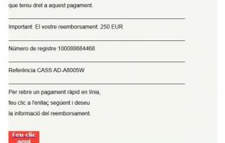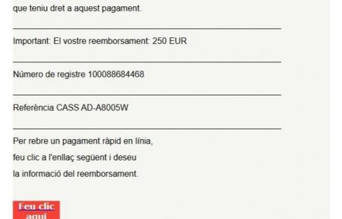 Els missatges que han rebut alguns ciutadans informen d’un suposat reemborsament i insten els destinataris a clicar un enllaç per rebre un pagament de manera immediata. L’enllaç redirigeix a una pàgina web falsa on es demana introduir informació confidencial, com les dades de targetes de crèdit.