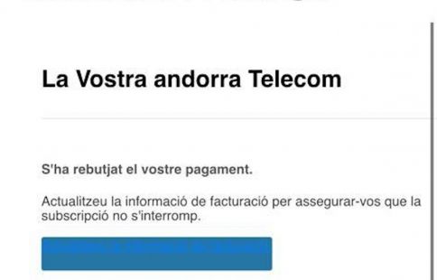 Per si el missatge genera algun dubte, es dona un correu de contacte. Incògnites, poques. És un clar intent de robar dades bancàries aprofitant el nom d’Andorra Telecom. Per tant, cal anar amb molt de compte i no caure en el parany.