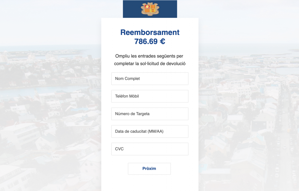 “Ens vam adonar que pagueu la factura dues vegades al mateix temps. Import: 786,69€. Per confirmar la devolució: https://impostosandorra.com” és el contingut del missatge que està arribant a diferents residents del Principat. No és la primera vegada que la companyia alerta a la ciutadania d’estafes d’aquest tipus. El passat 9 de maig, per exemple, Andorra Telecom va compartir a les seves xarxes un altre intent de “pishing”. En aquesta ocasió, a l’usuari l’arribava un correu electrònic que suplantava la identitat de la companyia: “Hem rebut una sol·licitud de recuperació de contrasenya del teu usuari d’Andorra Telecom”, era el missatge.