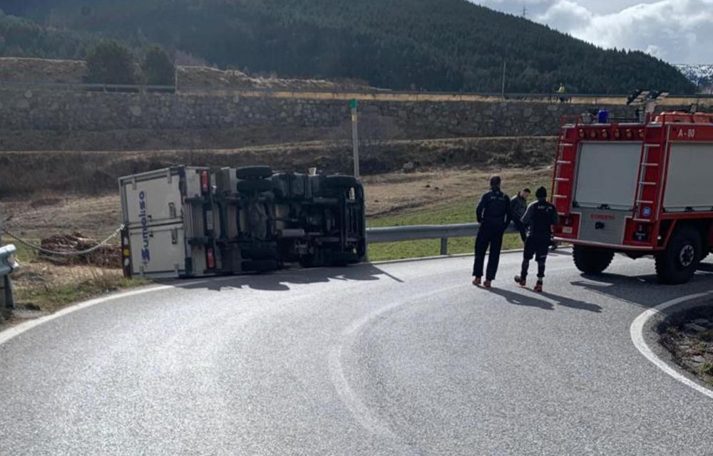 En principi, en el sinistre, que d’entrada semblaria més aparatós que greu, no s’hi hauria vist cap altre vehicle més implicat. El conductor ha sortit pel seu propi peu amb l'ajuda d'algun altre conductor que passava per la zona i que inicialment se l'ha trobat atrapat en l'interior de la cabina. Finalment no ha necessitat ni assistència mèdica tot i que d'entrada es queixava de dolor en un genoll. Sí que s'està fent pas alternatiu perquè caldrà dur fins a la zona una grua de gran tonatge per poder retirar el vehicle accidentat.