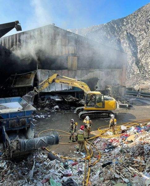 Amb l’excavadora també s’ha pogut remoure i escampar el material, segons que ha explicat Farré, i això ha anat facilitant el treball dels bombers, que són a lloc des de poc després de les 6 del matí, quan tots els efectius disponibles excepte els del Pas de la Casa han estat mobilitzats per evitar que el foc que ha cremat fins a destruir-la tota la nau, s’agafés al bosc, que durant estona ha estat el perill més gran, o saltés cap al forn incinerador, circumstància que s’ha descartat més aviat.