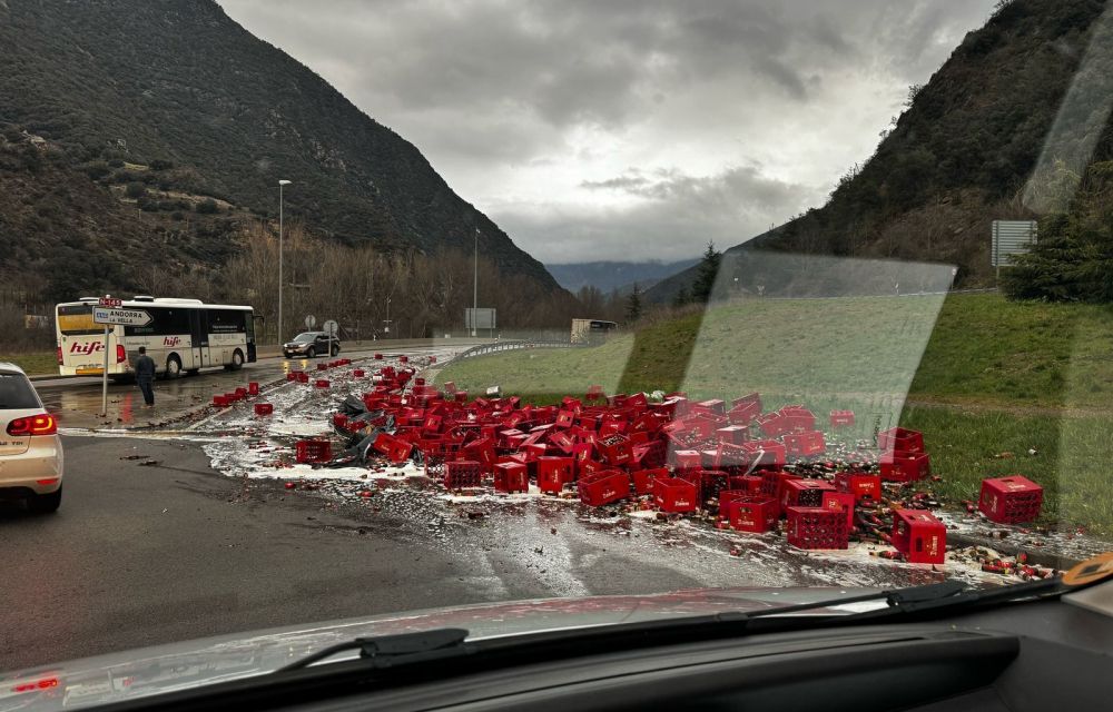 L’incident ha ocorregut poc després de 2/4 de 7 de la tarda quan per causes que els responsables de la companyia hauran d’acabar de determinar, una bona part de la càrrega ha sortit de la caixa del tràiler i ha acabat enmig de la carretera.