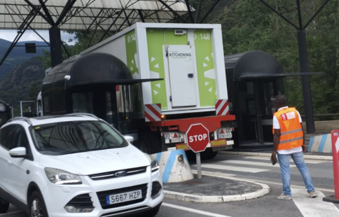 El vehicle, amb matrícula espanyola, sortia del país i en passar per aquest punt ha topat lateralment contra la caseta amb la part del remolc; a causa del xoc, la gàbia ha sofert desperfectes (danys al vidre i una mica de perjudicis a l’estructura)