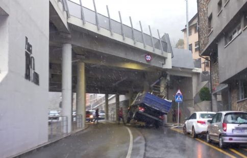L’incident ha passat poc després de les 9 del matí i més enllà dels agents de circulació de la parròquia, que han estat alertats des del primer moment i han estat els que s’han fet càrrec de la situació, també s’ha mobilitzat bombers i policia, encara que almenys aquests darrers no han hagut d’acudir a lloc. Es temia que el camió pogués perdre la càrrega però tampoc ha estat així tot i que el vehicle ha quedat basculant.