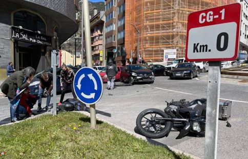 El sinistre, amb la motocicleta aparentment d’una empresa de repartiment implicada (una BMW G) i un Renault Clio matriculat al Principat ha passat poc després de les 2 de la tarda. I mentre no s’ha assistit el ferit i s’han retirat els dos vehicles que s’han vist afectats per la topada el trànsit s’ha vist lleugerament alterat.