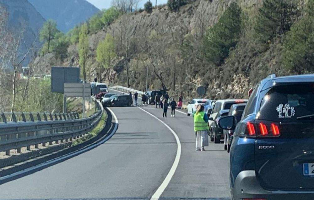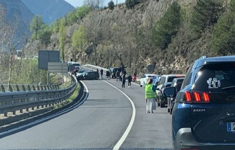 Els bombers han rebut l'avís del sinistre una mica abans de les onze del matí d'aquest dissabte. Fins al lloc dels fets s'ha traslladat també efectius dels mossos d'esquadra, dues dotacions terrestres dels bombers i un helicòpter medicalitzat. Mitja hora després i ja retirats els vehicles s'ha fet pas alternatinatiu entre els quilòmetres 163 a 165.