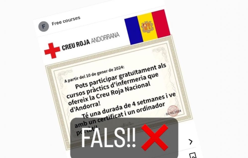 ⚠️Avís d'informació falsa⚠️ Des de Creu Roja Andorrana no estem oferint cap tipus de curs d'infermeria. Tota informació relacionada és falsa! Aneu amb ull 👀 i no feu click a cap enllaç per evitar la presa de les vostres dades!@coiaandorra @andorra_policia pic.twitter.com/ml6EGBXHeu