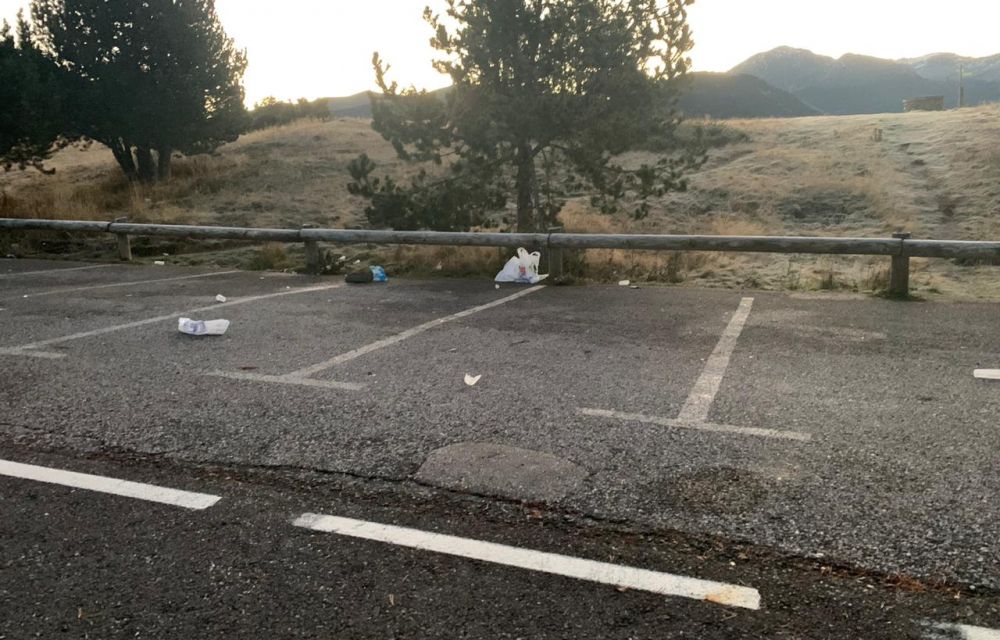 El ‘botellón’ s’ha fet al bell mig de la carretera que enllaça Canillo i Ordino. En concret, a l’aparcament del Bony de les Neres. Aquest matí eren ben visibles les restes d’ampolles buides i altres deixalles que van abandonar els participants.
